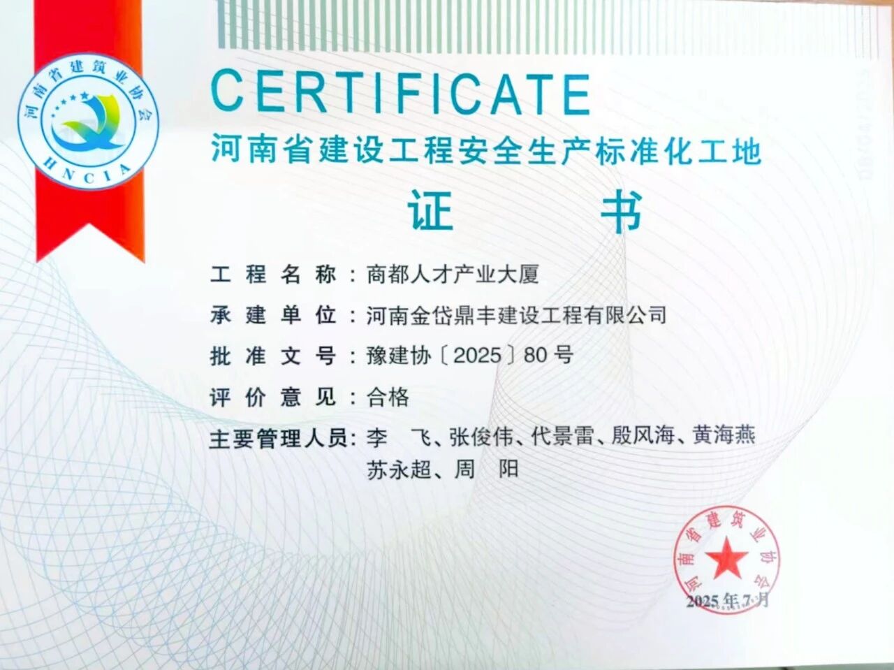 公司監理的商都人才產業大廈項目獲評“2025年度河南省建設工程安全生產標準化工地”?